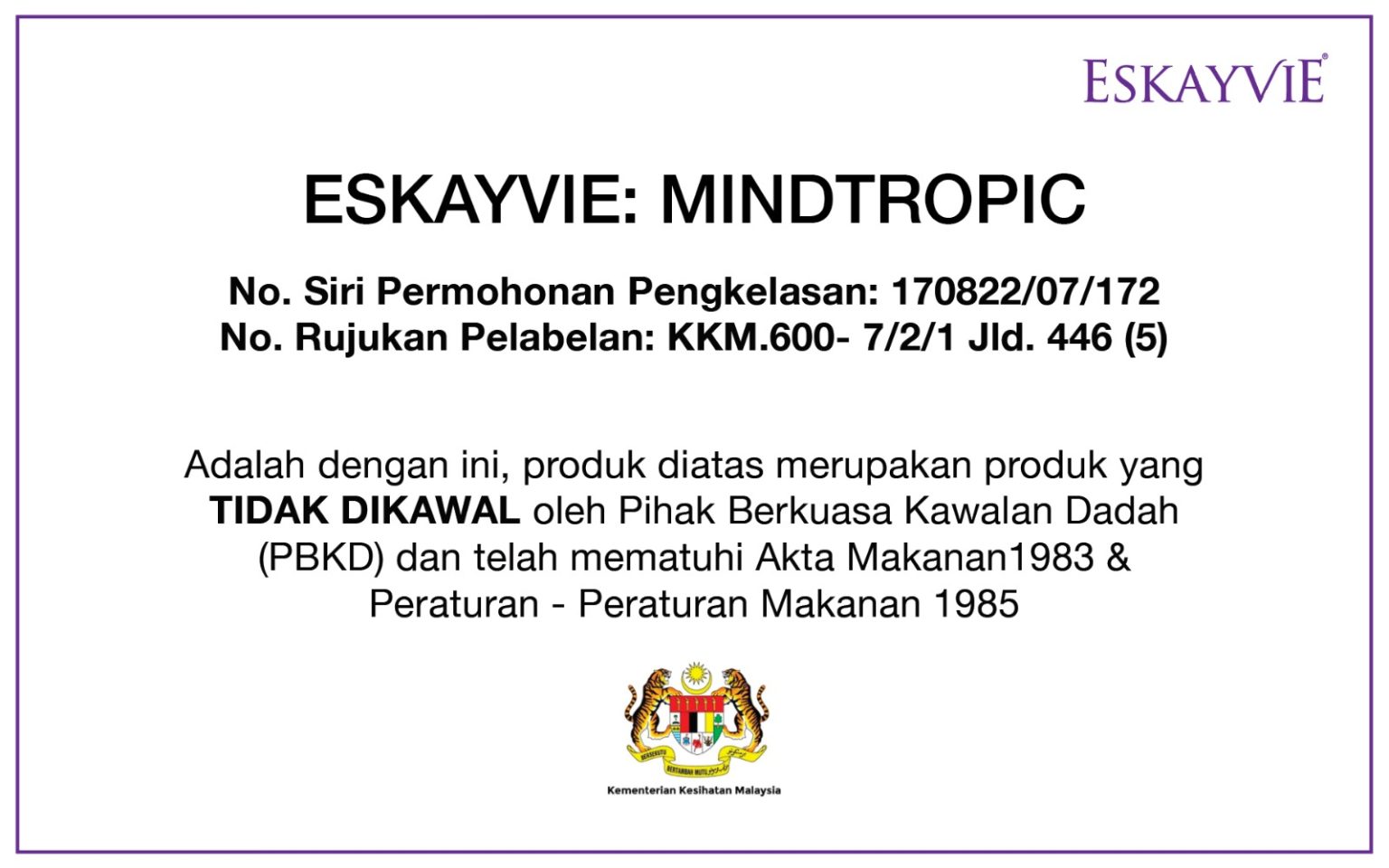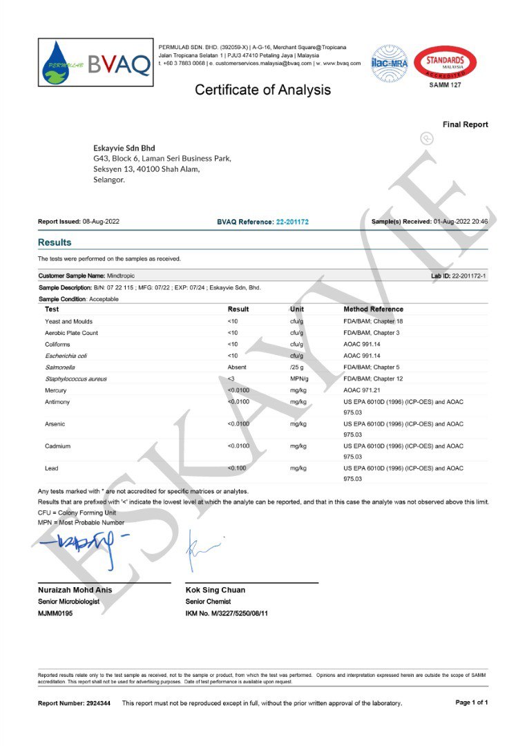 Eskayvie Mindtropic merupakan makanan tambahan untuk meningkatkan fungsi otak dan minda anak anda (Mind Booster). Jadi anak anda akan lebih mudah faham dan cepat mengingat ketika belajar. Dan membantu mereka untuk tidak stress dan cukup rehat bagi memastikan fungsi otak berada pada tahap maksimum.